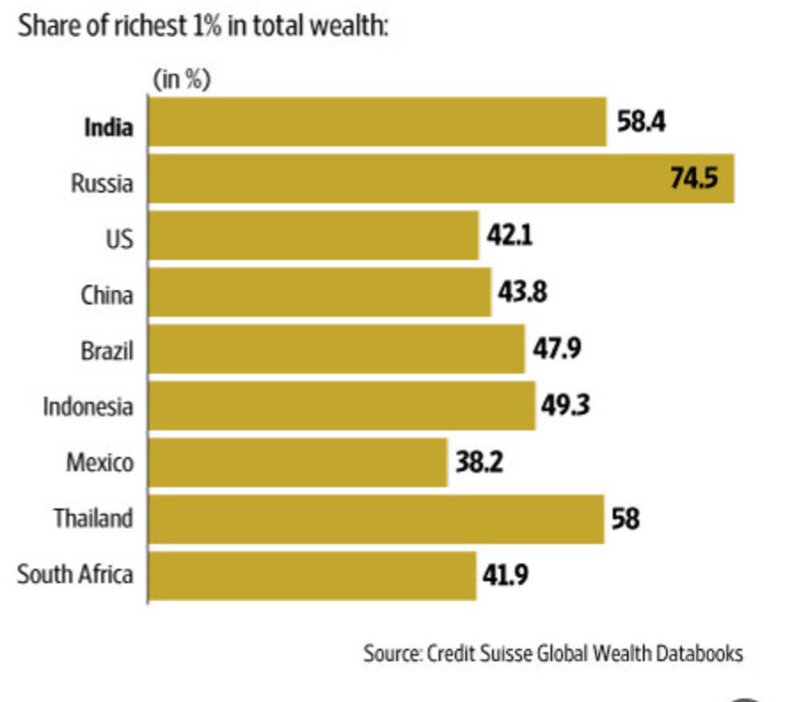 ¿Generar riqueza? Ya hay riqueza. Se trata de distribuirla justamente. El 1% de la población, acumula estos % de la riqueza de su país:pic.twitter.com/RFIxLIkemw