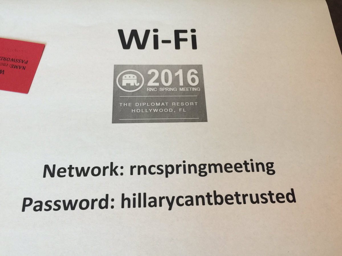 זה מצחיק.. הסיסמא לוויפיי בועידה של הרפובליקנים.. RNChttps://twitter.com/heather_lacy1/status/722869300122501120 …