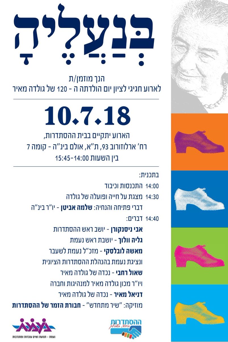 ב-10 ביולי יקיימו ההסתדרות ונעמת אירוע לציון 120 שנה להולדתה של גולדה מאיר בהשתתפות יו״ר ההסתדרות אבי ניסנקורן ויו״ר נעמת גליה וולוך. האירוע פתוח לציבור אך יש לאשר השתתפות בטל. 03-6921990 או במייל [email protected]pic.twitter.com/Ivut4GXtdf