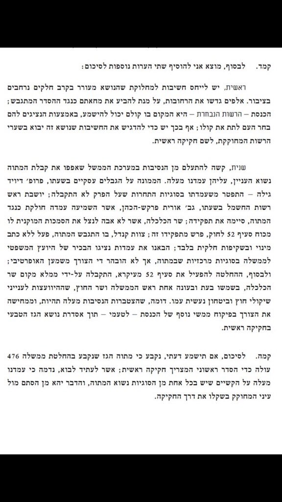 21. עדכון - הגשנו יחד עם תגובה להודעת המדינה בה היא דחתה את ההצעה של ביהמ"ש בעניין הסדרת "סוגיית היציבות"