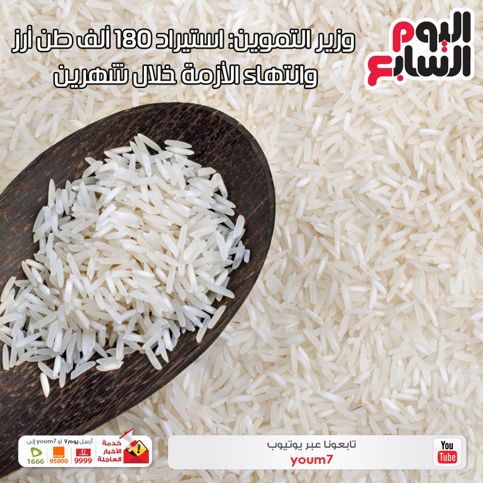 وزير التموين: استيراد 180 ألف طن أرز.. وانتهاء الأزمة خلال شهرين http://goo.gl/qPRwYy pic.twitter.com/b0HaDSn81x