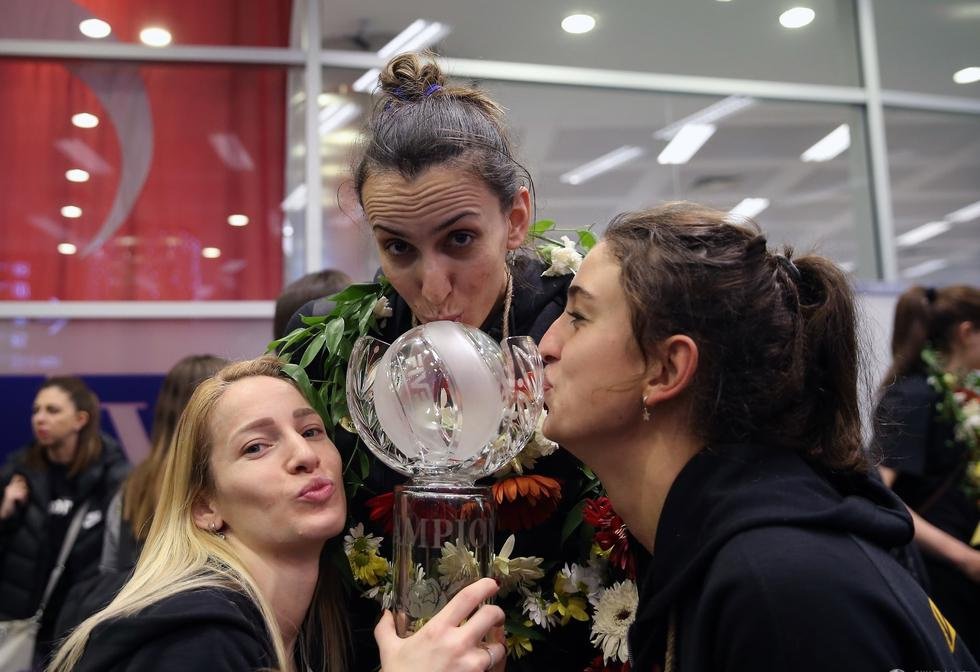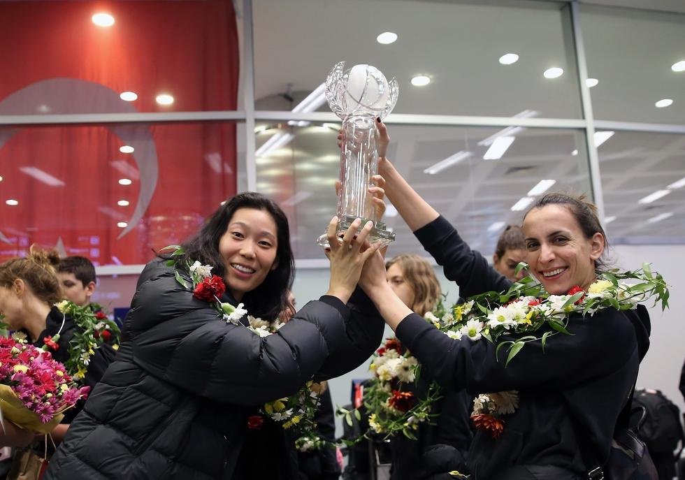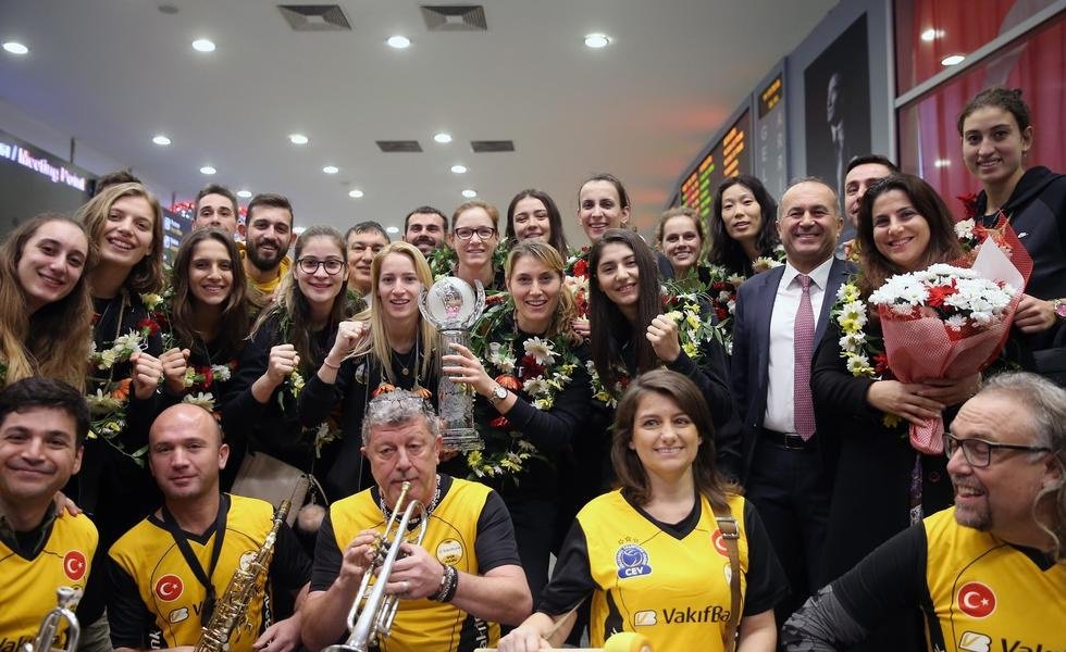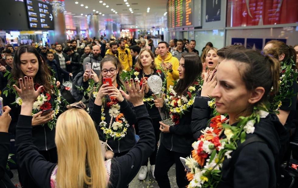 Turkish volleyball club Vakifbank received warm welcome from fans at the airport back to Istanbul from China after lifting the trophy of FIVB Women's Club World Championship for the 3rd time