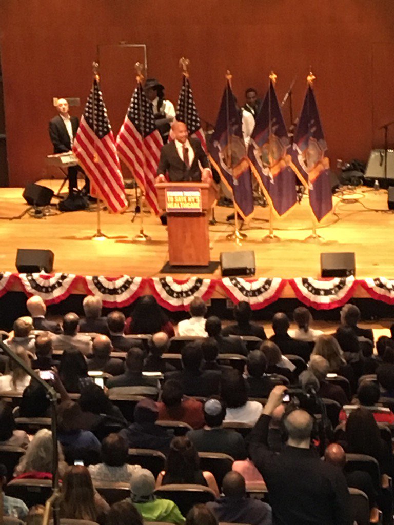 As takes stage in Bronx for healthcare rally, someone yells "Cuomo for President!!!"