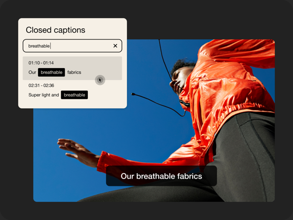 Captions help your teams search for videos and jump to key moments fast—plus, they boost your videos’ search ranking.
