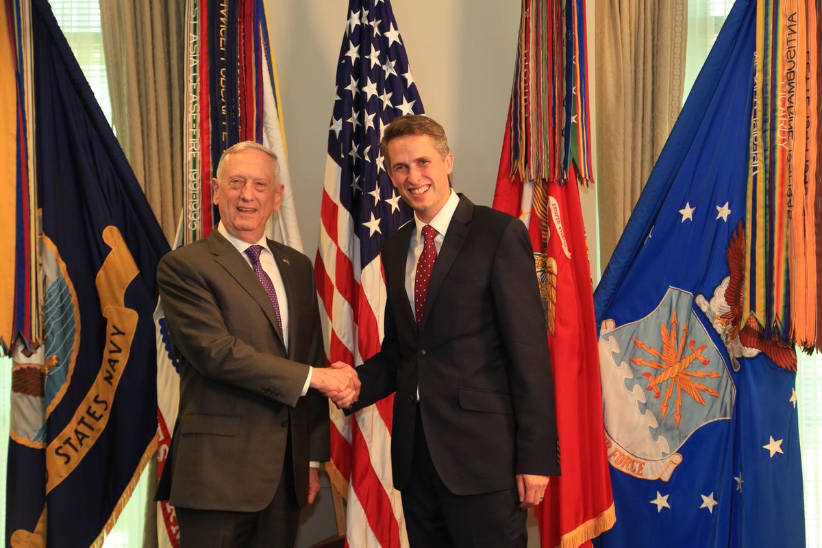 @GavinWilliamson met with#SecDef Mattis today in the Pentagon to discuss current threats to UK and US national security.pic.twitter.com/d6e9j2JazU