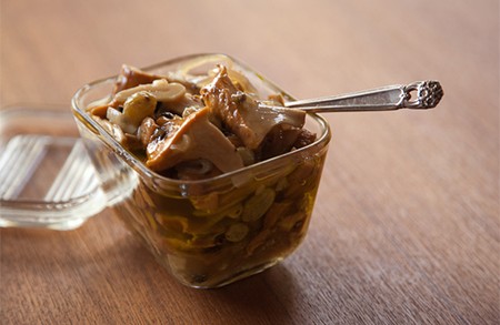molds 4 at a time into small sauce pan, covered them with oil, then