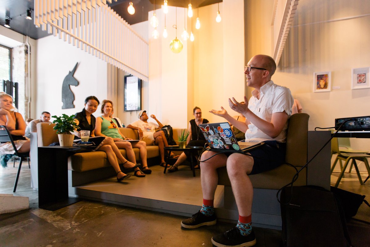 Sometimes the focus of the Meetup takes a backseat to inside jokes, air guitar, and the excitement of being together.