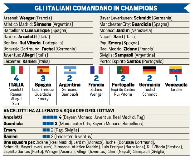 שמינית גמר הצמפיונס עם 4 מאצנים איטלקיים על הקווים. לא שיא, כבר היה 5.