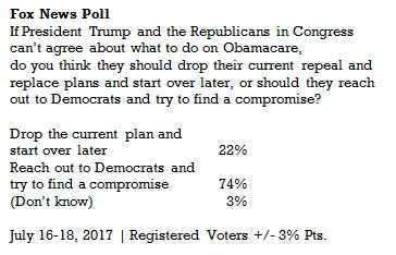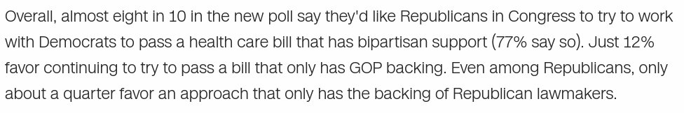 New CNN poll: Only 12% of Americans want GOP to pass health bill without Democrats. Only 25% of *Rs* favor this. http://www.cnn.com/2017/07/20/politics/health-care-poll-abandon-repeal-replace/index.html?adkey=bn …pic.twitter.com/9xwxmAQkzE