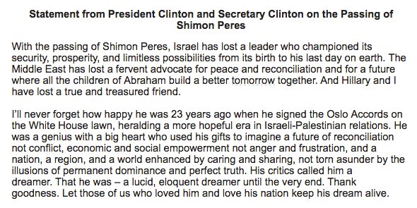@BillClinton and Hillary on the passing of Shimon Perespic.twitter.com/nyCE88Kvxb