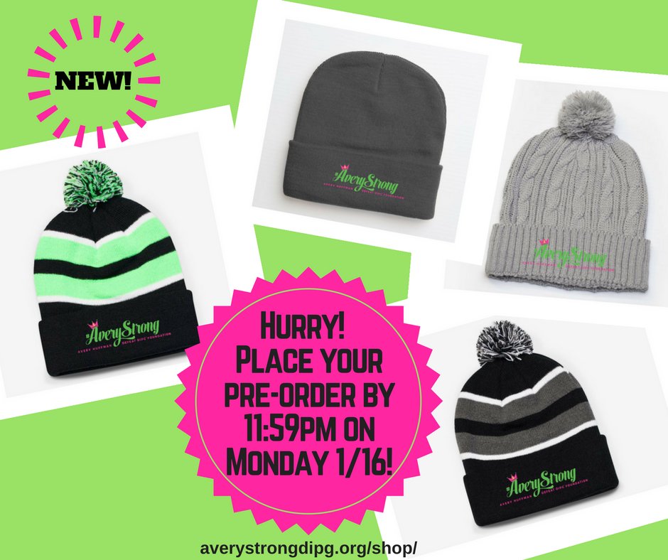 #AveryStrong beanie by midnight on Monday and guarantee your beanie! https://averystrongdipg.org/shop/ pic.twitter.com/JqhqEQZqLU