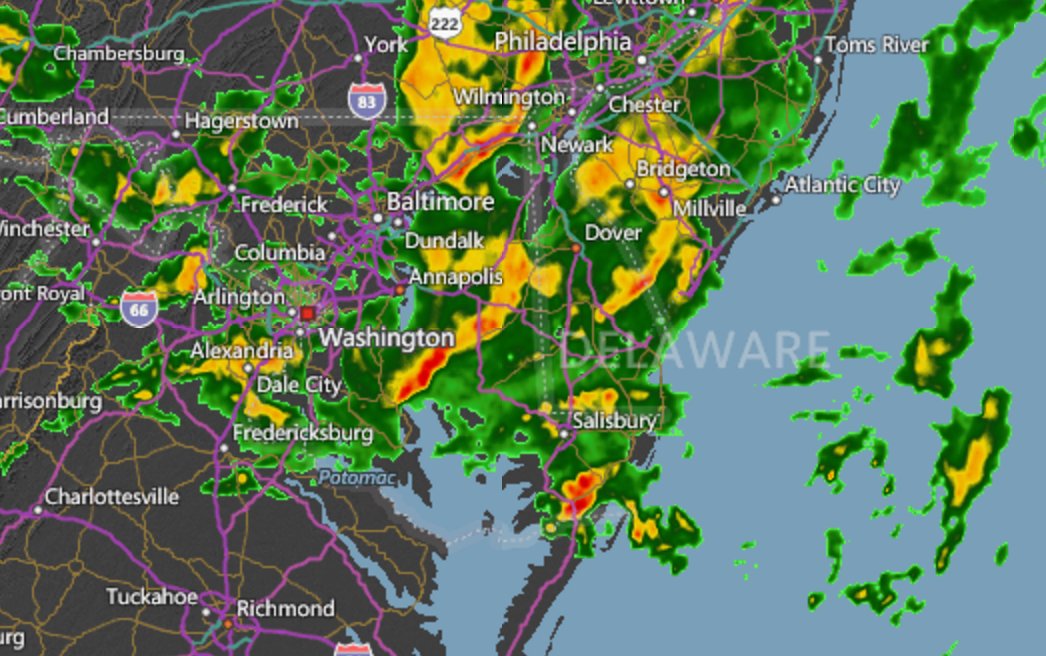 Rain in the Northeast continues to fall this morning. Watch for flooded roadways. Radar: http://ow.ly/7iRE304Ilzd https://twitter.com/DelawareDOT/status/781785932525604864 …