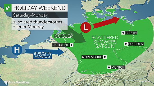 Scattered showers and thunderstorms may dampen Day of German Unity festivities this weekend: http://ow.ly/DFEk304I3Zl pic.twitter.com/hBVvTutxQ7