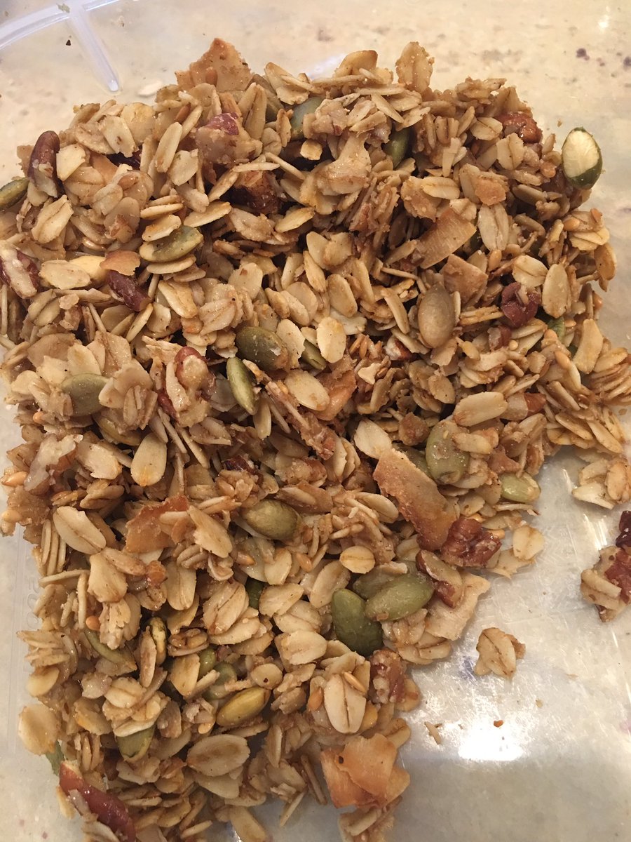 Neighbor made this incredible granola and since we are all going to die in a nuclear holocaust I'm going to eat the whole box.