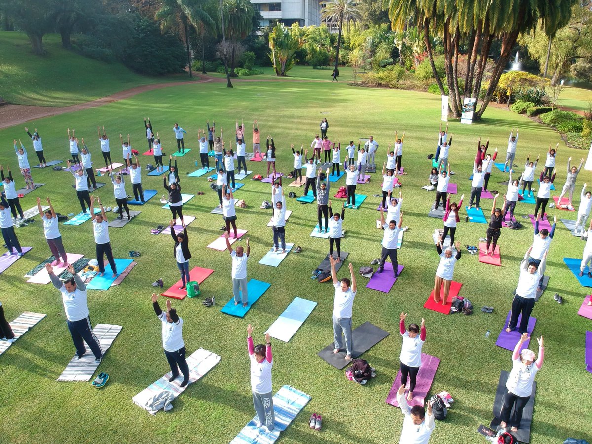 Close to 150 Yoga lovers braved the bad weather and participated in the event with great enthusiasm. Leading