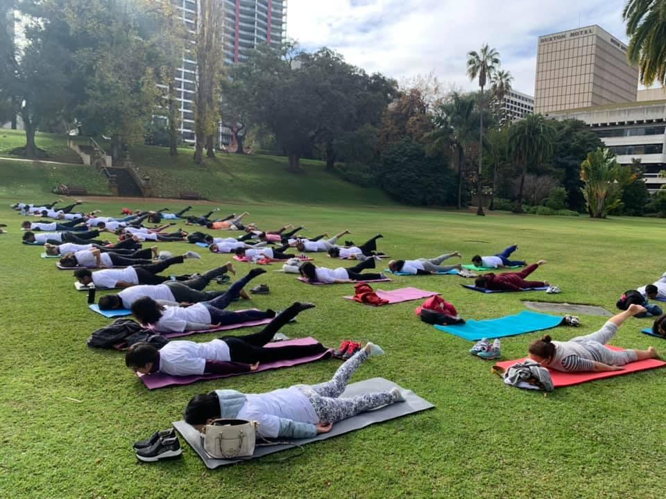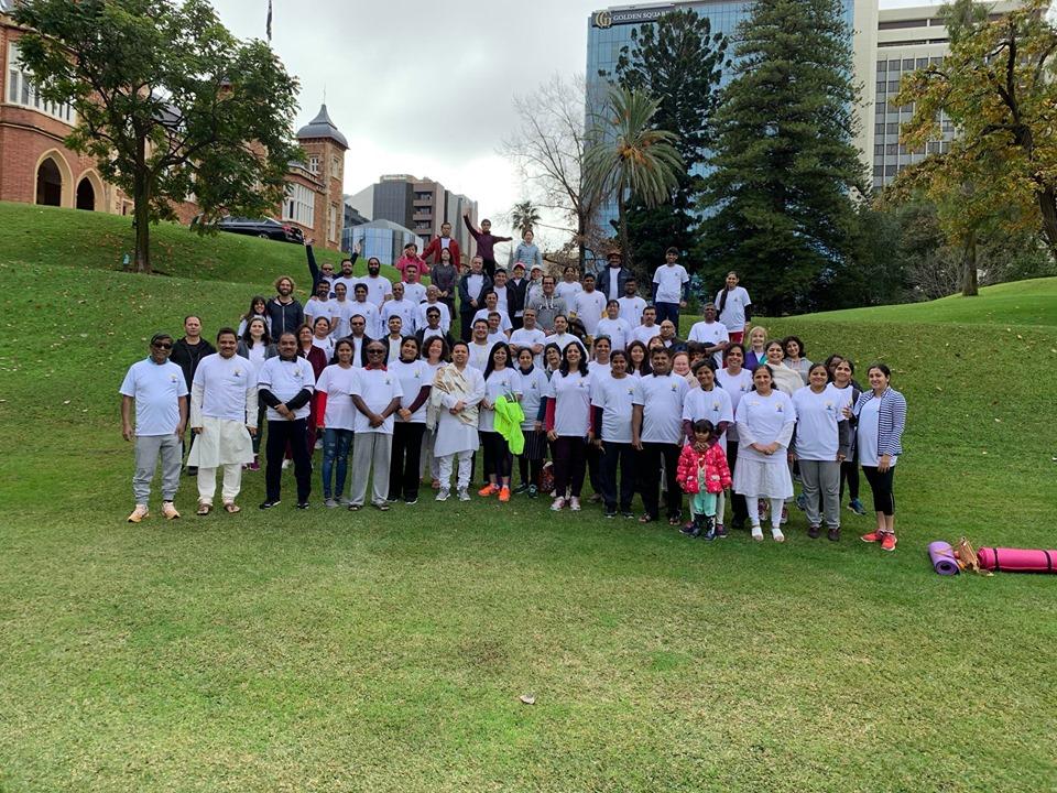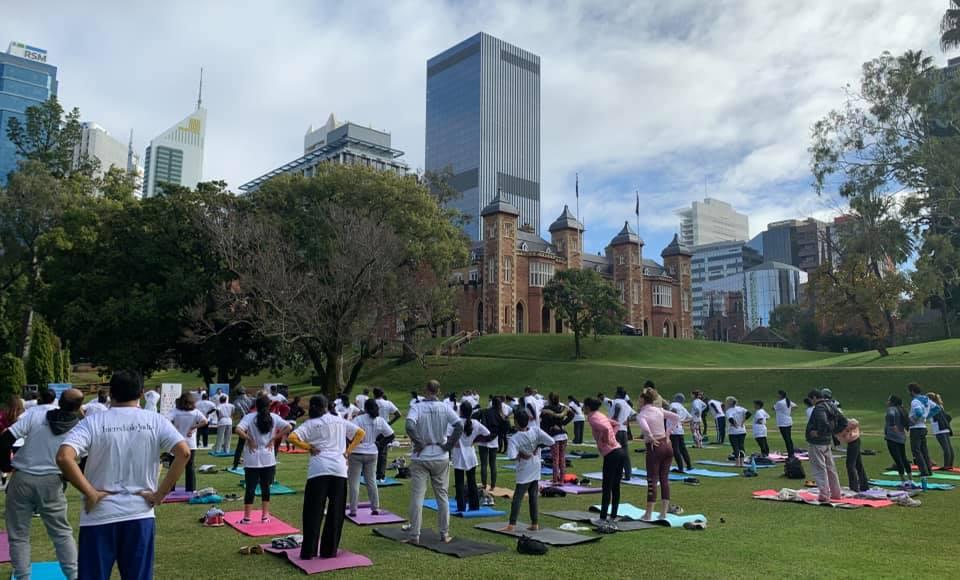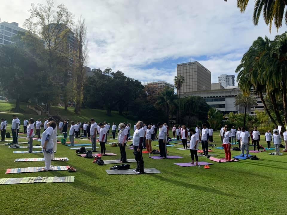 #YogaDay2019 In celebration of the 5th International Day of Yoga, Consulate organized a public event on 15th June in the picturesque gardens of the@GovHouseWA, the Official Residence of the Governor of#WesternAustralia with support@IndianSocietyWA &@ArtofLiving Foundation.pic.twitter.com/UpMDKh0NV4