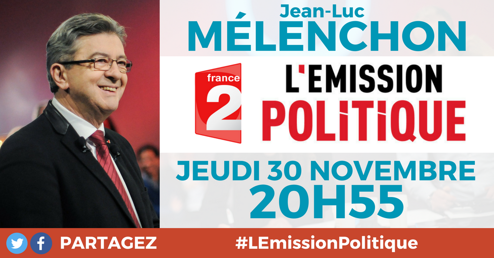 #LEmissionPolitique la suite, à 22h30, après l'interview de Jean-Luc Mélenchon sur#France2pic.twitter.com/FQorwlDN9v