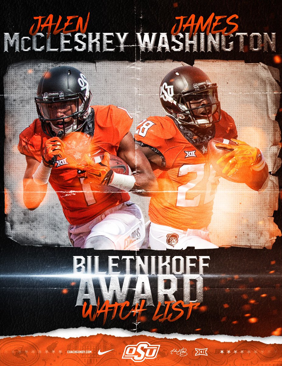 Wide Receivers James Washington and Jalen McCleskey are on the watch list for the 2017 Biletnikoff Award! Congrats, Cowboys!
