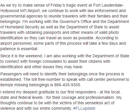 17. Tragic news coming from Ft. Lauderdale-Hollywood airport in FL23. In touch w/ TSA & law enforcement. Thoughts are w/ the victims right now.