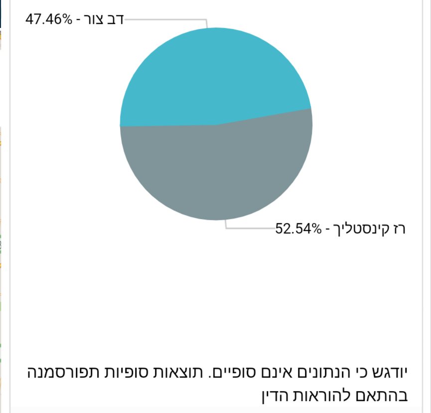 בתום ספירה של כ-78% מהקלפיות: רז קינסטליך מוביל עם 52.6%, דב צור עם 47.4% בלבד. המהפך ב-