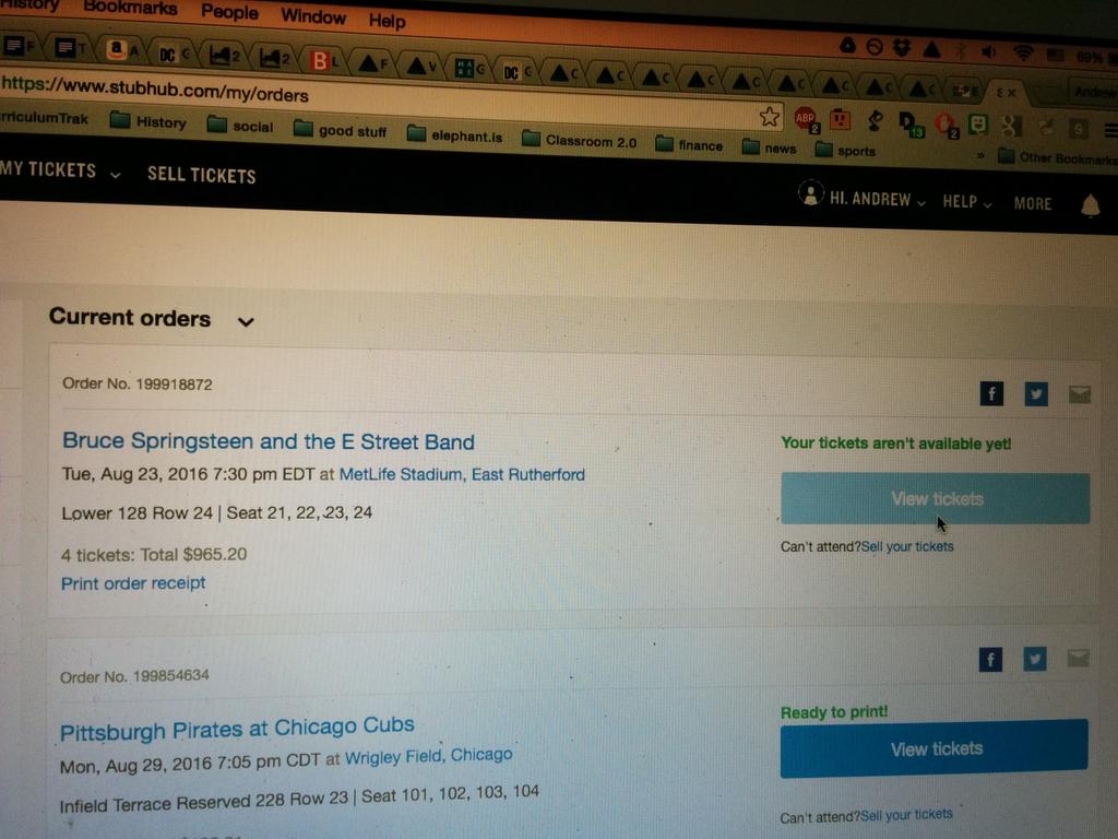 6. תזכורת לעצמי: פגישה עם מר ברוס ספרינגסטין ואי בנד ביום שלישי, 23 באוגוסט 2016, אצטדיון מטלייף, ניו ג'רזי