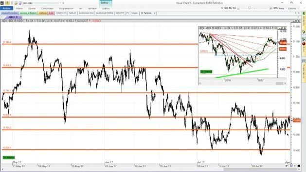 Nota técnica del Eurostoxx 50: Soporte menor en los 3440,56 puntos. vía