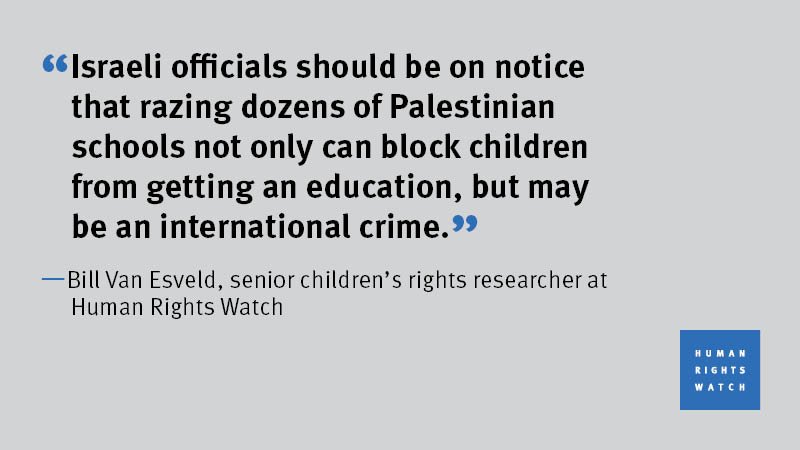No one stays where they can't educate their children, so Israel demolishes and blocks Palestinian schools as it builds and builds settlements--a clear war-crime strategy to depopulate parts of the West Bank near the illegal settlements. http://bit.ly/2HoHjVi pic.twitter.com/i5LH79g5d5
