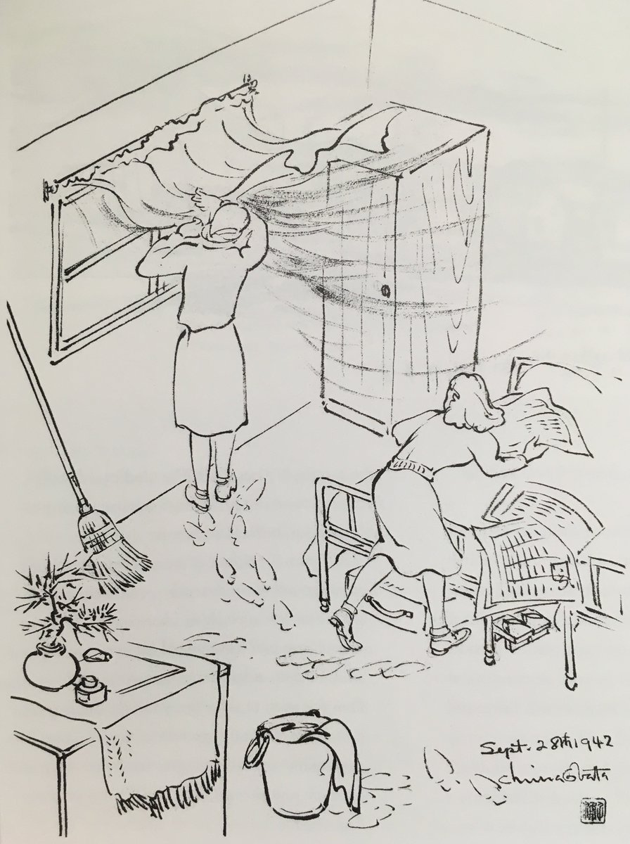 All of the art here was created by Chiura Obata during his interment. It's documented in the book 'Topaz Moon':http://amzn.to/2ktzr5I