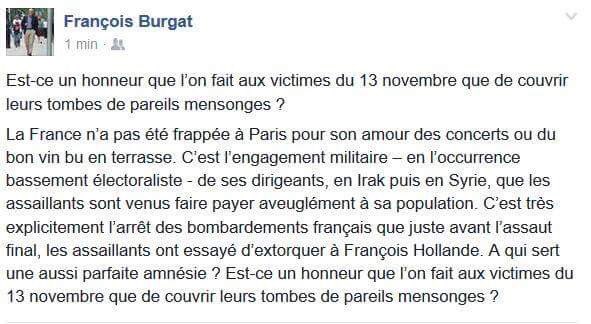 17. En estimant, comme Michel Onfray, que l'intervention française en Irak/Syrie est l'unique cause des attentats, François Burgat se trompe
