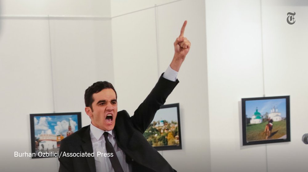 A gunman gestures after shooting Russia's ambassador to Turkey in Ankara. Russia says the envoy has died http://nyti.ms/2hANQOJ pic.twitter.com/yNqETBAMtm
