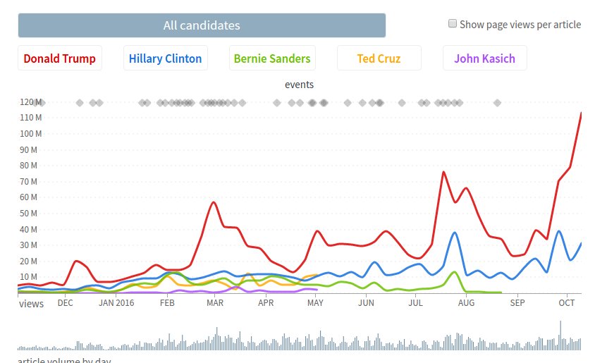 . election dashboard: 192M pageviews to 10,000+ articles written about ; now "off the charts".