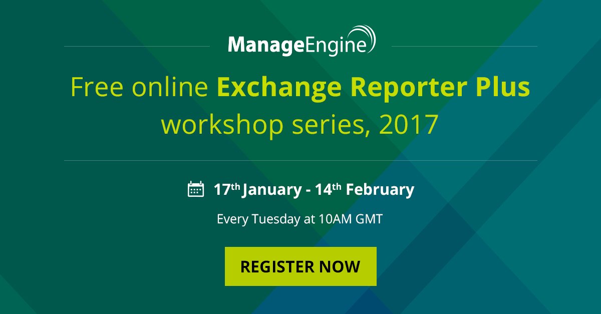 4. ManageEngine Exchange Reporter Plus Free Online Workshop. Inviting you to be part of this 5-workshop series.REGISTER