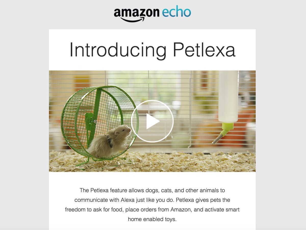 I just got Amazon email telling me my pets can order food on my new Echo. Dumb, not funny. I got the Echo yesterday.