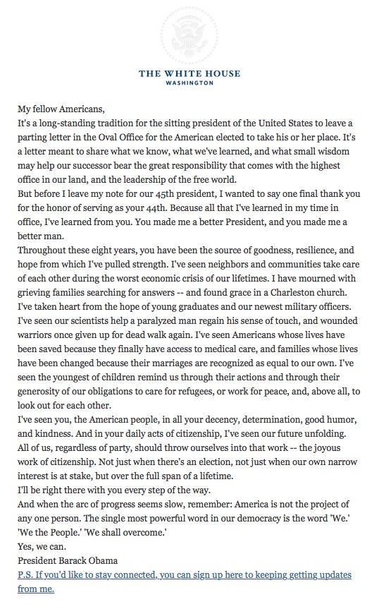 5. “You made me a better President, and you made me a better man.”: President Obama pens a final goodbye letter to his fellow Americans