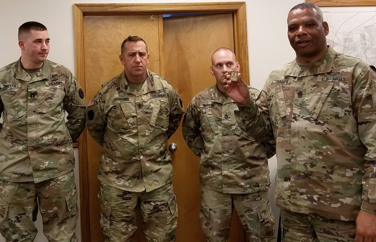 3 Soldiers supporting Ft. Indiantown Gap received coins Wed. from Army