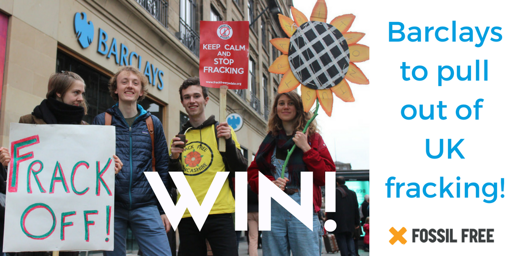 Barclays to pull investment out of UK fracking companies!