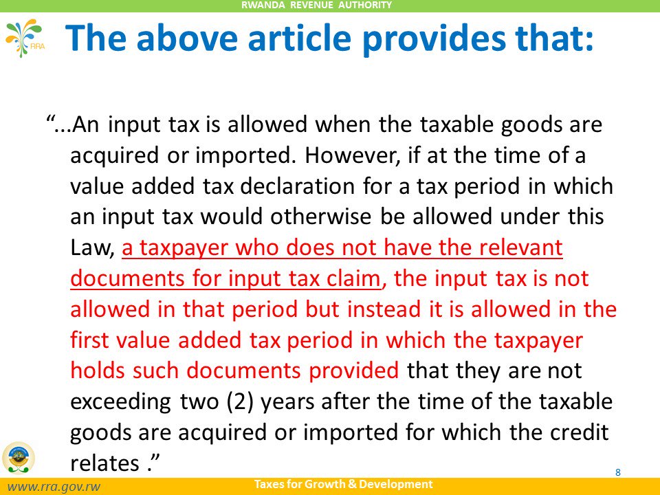 The Public Ruling issued by the Commissioner General on article 15 of the law no 37/2012 of 09/11/2012 establishing VAT stipulates that:pic.twitter.com/ps35sQBxUL