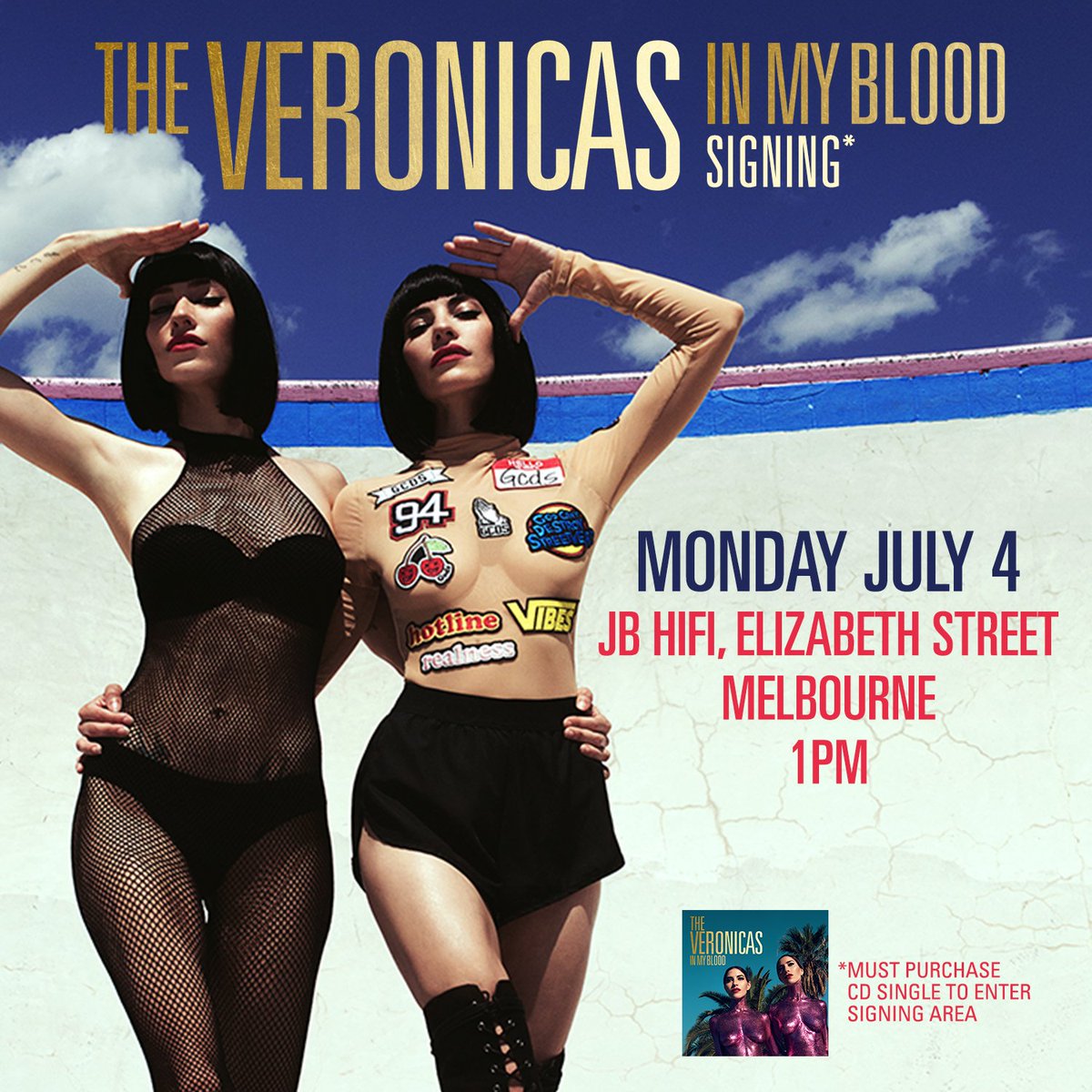 @TheVeronicas are signing copies of#InMyBlood this Monday July 4th at our Elizabeth St Store from 1pm!pic.twitter.com/MA1guQR26r