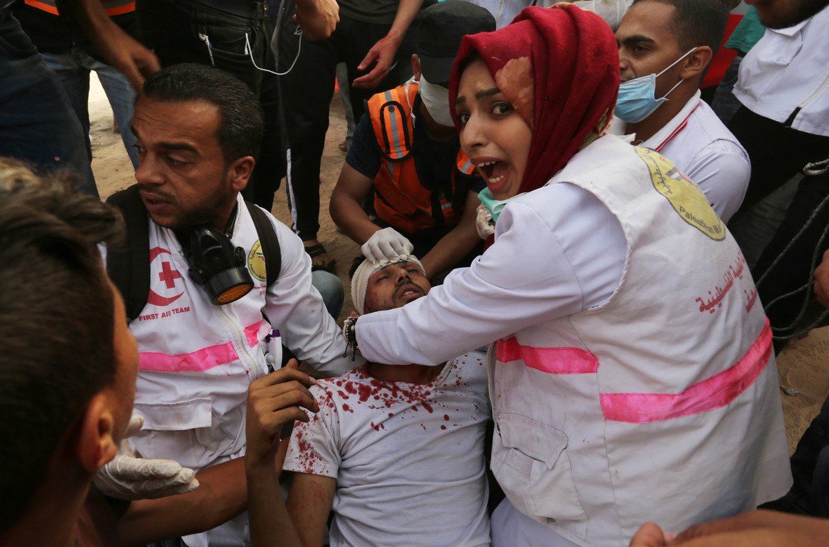 evacuated a wounded during demonstrations. Around 80 Palestinians were killed by Israeli forces in the occupied West Bank and Strip during the month of May. More than160 have been killed by and armed civilians so far this year.