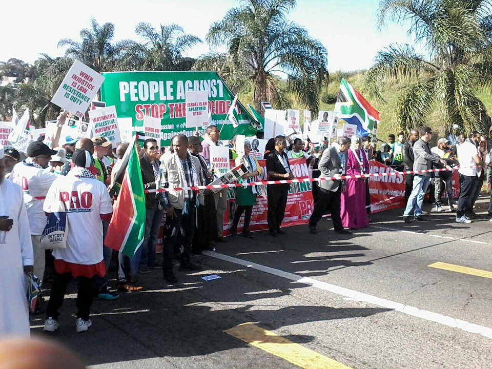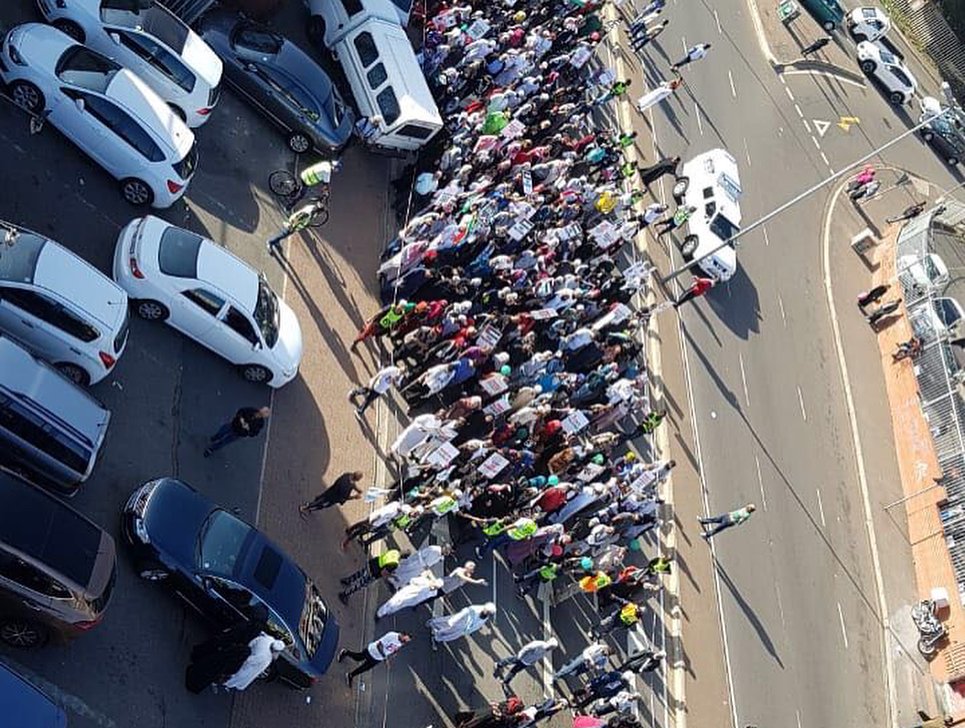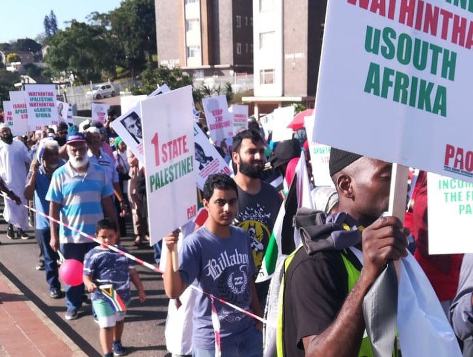 🇿🇦 : Part of the match in Durban, South Africa, in solidarity with Palestine and in protest of the ongoing Israeli crimes, the grandson of former President/ nobel peace prize winner, Mr Nelson Mandela, attending the march to show his support for .