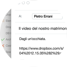 Invia tutto il video del tuo matrimonio ai tuoi famigliari con un semplice link. È facile condividere file di grandi dimensioni con chiunque, anche se non ha un account Dropbox.