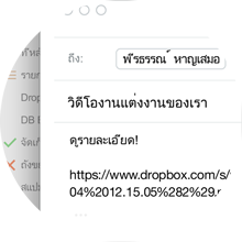 ส่งวิดีโอวันแต่งงานเต็มความยาวให้ครอบครัวโดยใช้เพียงลิงก์เดียว แบ่งปันไฟล์ขนาดใหญ่กับบุคคลอื่นได้ง่ายๆ แม้ว่าพวกเขาจะไม่มีบัญชี Dropbox ก็ตาม