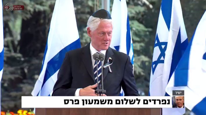 ביל קלינטון, נשיאה לשעבר של ארצות הברית בנאום פרידה משמעון פרס.pic.twitter.com/tW6VSQXqM3