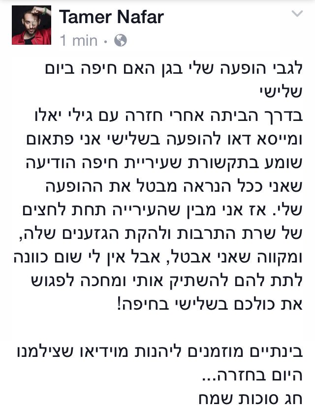 למרות הודעת עיריית חיפה, תאמר נפאר מבהיר ״לא אבטל את ההופעה״
