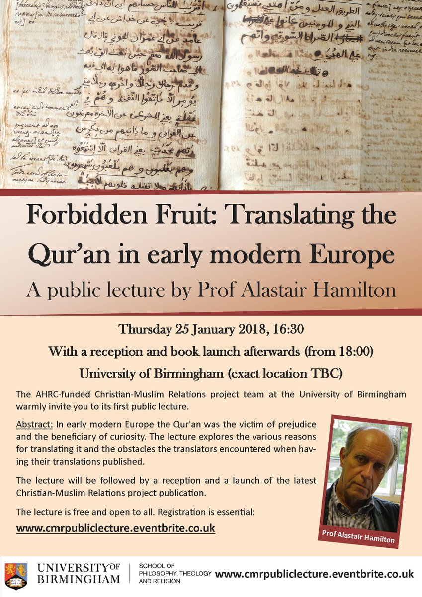#IslamicStudies https://www.eventbrite.co.uk/e/forbidden-fruit-translating-the-quran-in-early-modern-europe-tickets-38542780494 …pic.twitter.com/OljQisjTrm