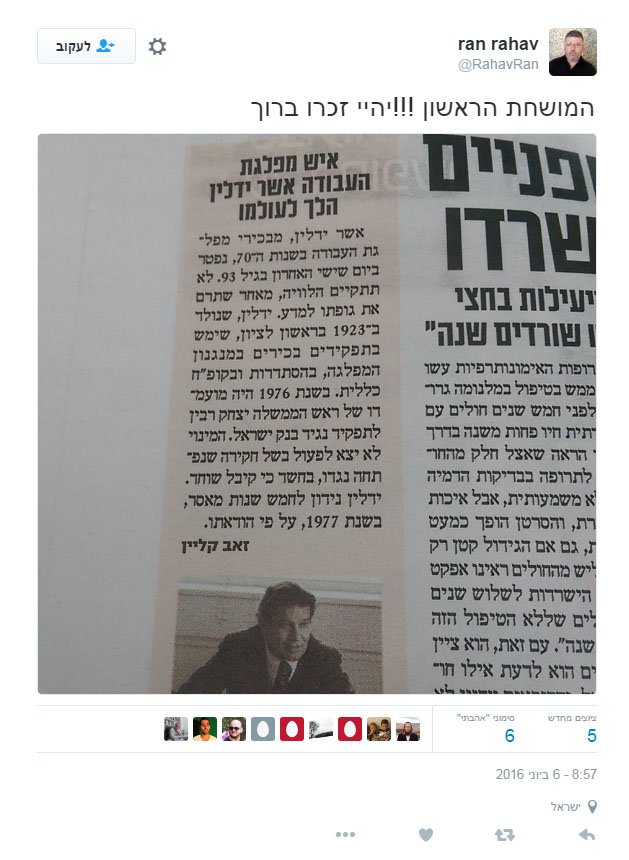 בפינתנו "לא נגענו": רני רהב, העובד בתחום יחסי הציבור, פירסם את הטוויט שבצילום בצמוד לידיעה על פטירתו של אשר ידליןpic.twitter.com/zwZJi1XZos