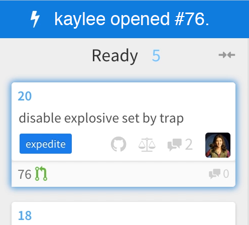 Your Waffle board shows your GitHub Issues and Pull Requests in real time. Never wonder if an Issue is still in progress or not. Waffle listens to the actions in your workflow to know when work is started, ready for review, or finished and updates your status automatically.