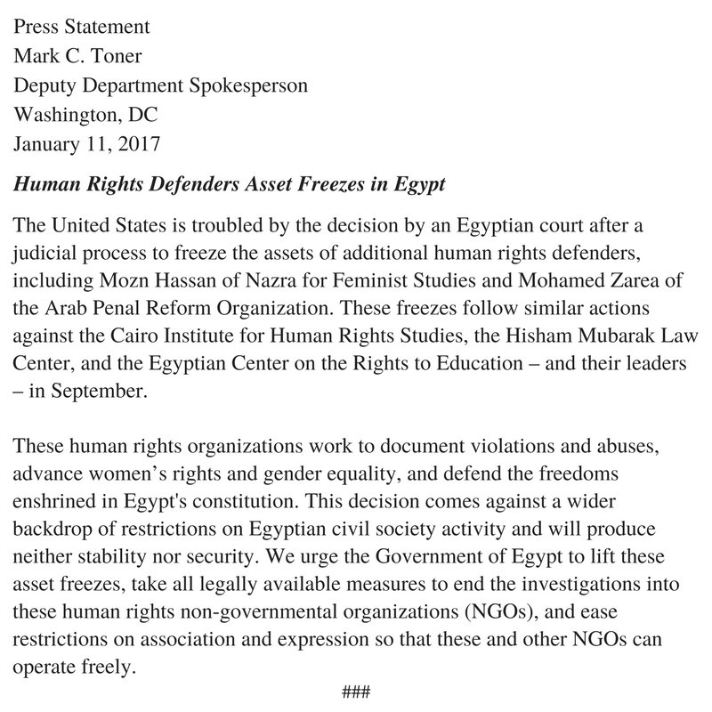 #Egypt's ongoing crackdown on civil society & rts defenders does nothing for security or stability. Orgs must be allowed to operate freely:pic.twitter.com/KBihcO5xeQ