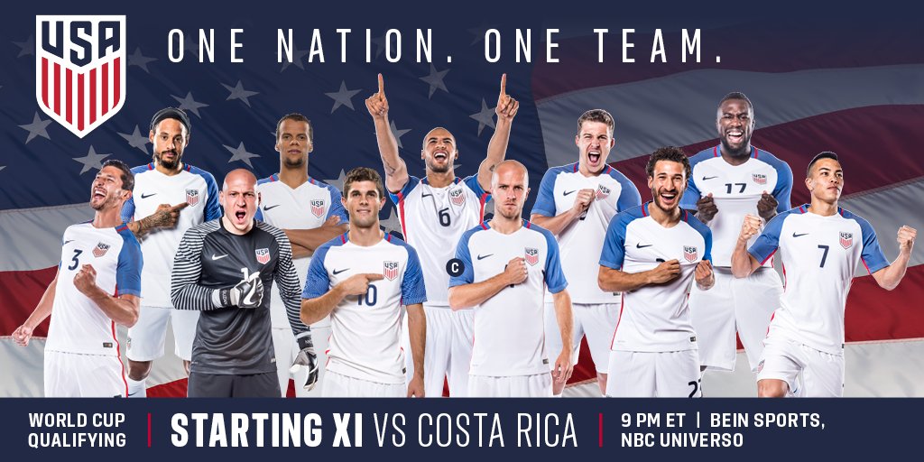 Here are the teams. Formations as expected for both sides.http://www.sbnation.com/soccer/2016/11/15/13644982/usa-vs-costa-rica-lineups-team-news-usmnt-world-cup-qualifying …