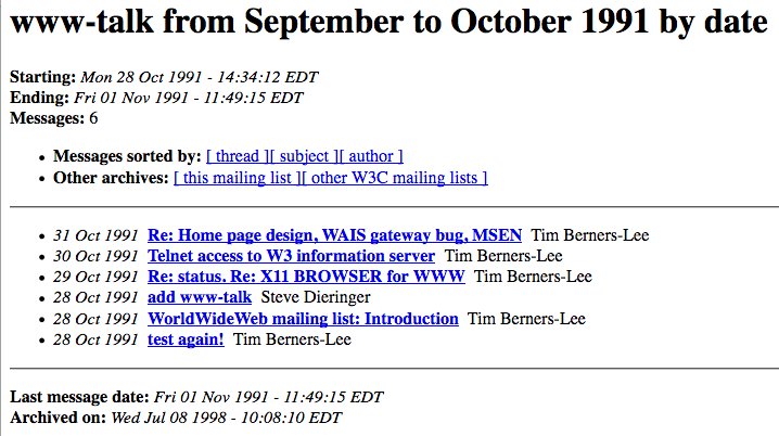 happy 25th birthday, www-talk! https://lists.w3.org/Archives/Public/www-talk/1991SepOct/ …pic.twitter.com/zXOR9xnGyI